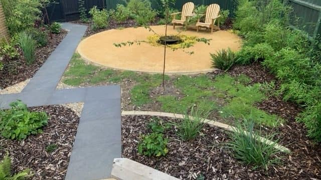 A quiet corner with resin-bound aggregate and a gentle bubble pool for peaceful reflection