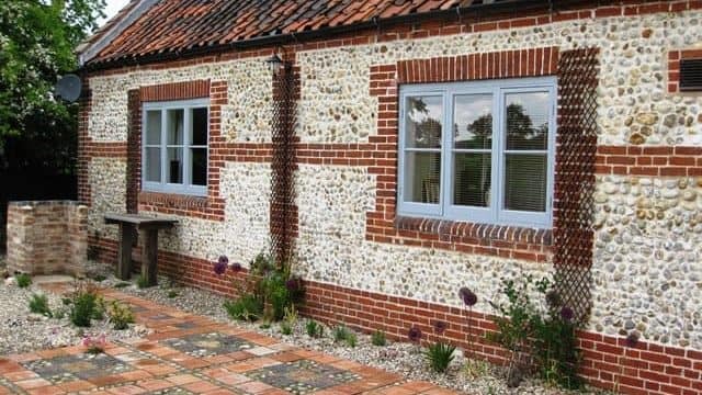 The patio area is a highlight, paved with reclaimed paments and stable bricks salvaged from a nearby barn. Flint cobbles, unearthed during the build, have been repurposed to add texture and echo the chapel’s original features.